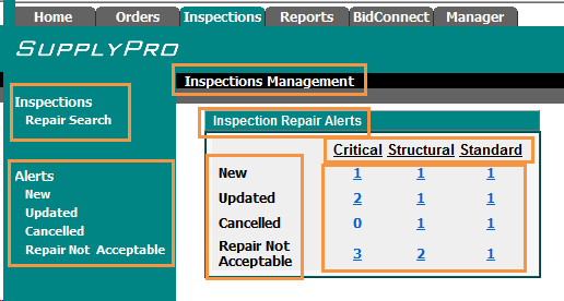 see an alerts matrix for Inspections on the SupplyPro Home tab.