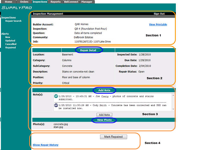 The Inspection Defect Detail Screen Repair