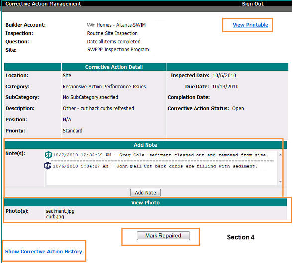 The Inspection Corrective Action Detail Screen Repair